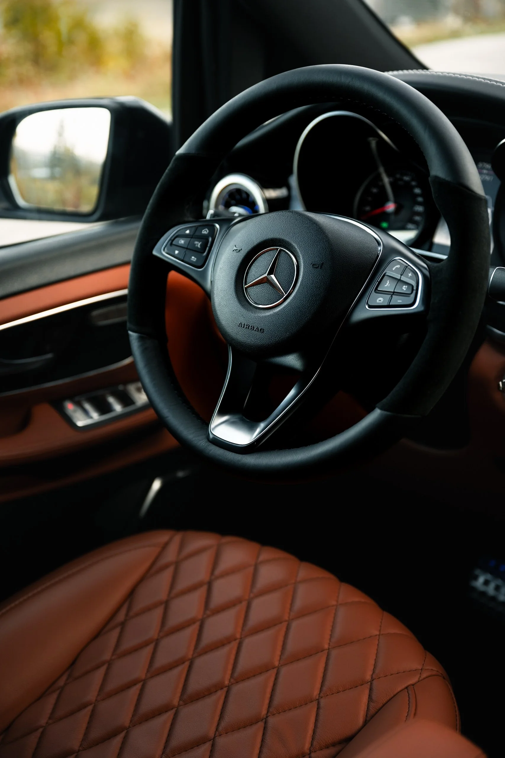 Cognac leather interior with diamond stitching